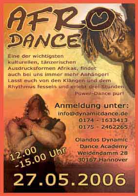 Wenn es eine Wiederholung geben wird kann ich ihn auf jeden Fall allen empfehlen, die mal in etwas ganz anderes als Salsa reinschnuppern (und sich für Hip Hop vielleicht doch etwas zu alt fühlen :rolleyes: ) - und nebenbei noch ein Paar Pfunde verlieren wollen! Olando hat uns die drei Stunden ganz gut gescheucht - ich hab bis heute Muskelkater!